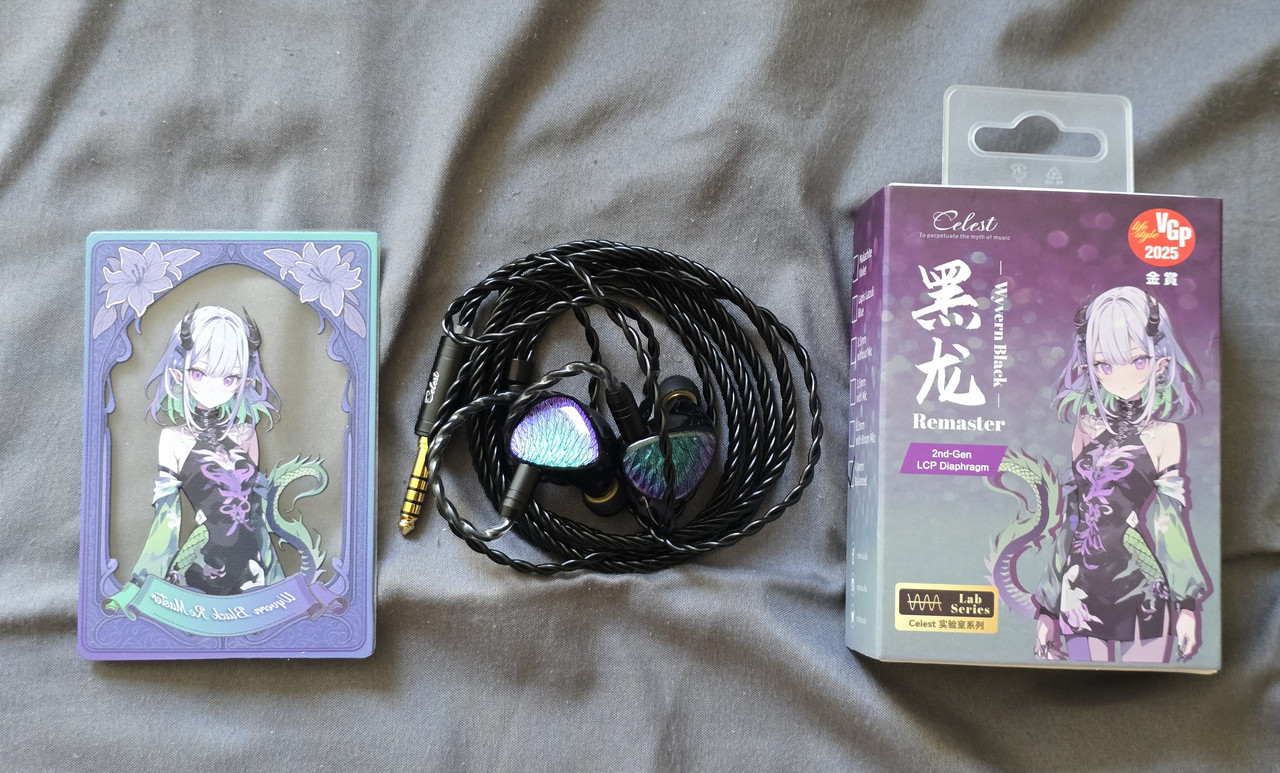 First IEMs, the Celest Dark Phoenix. I have always preferred the in-ear earbuds type, but I don't have good audiophile ears so I just picked something I thought looked cool. I really like the resin shells and they sound good to my ears. I heard a lot of people didn't like the Phoenix Call tuning, but this one is a re-tuned version that's apparently a little bit more relaxedhuh.. the tuning of these things...