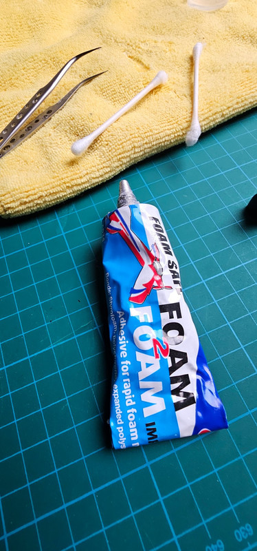 Foam adhesive is going down. I applied by scraping in on with fine tip tweezers.